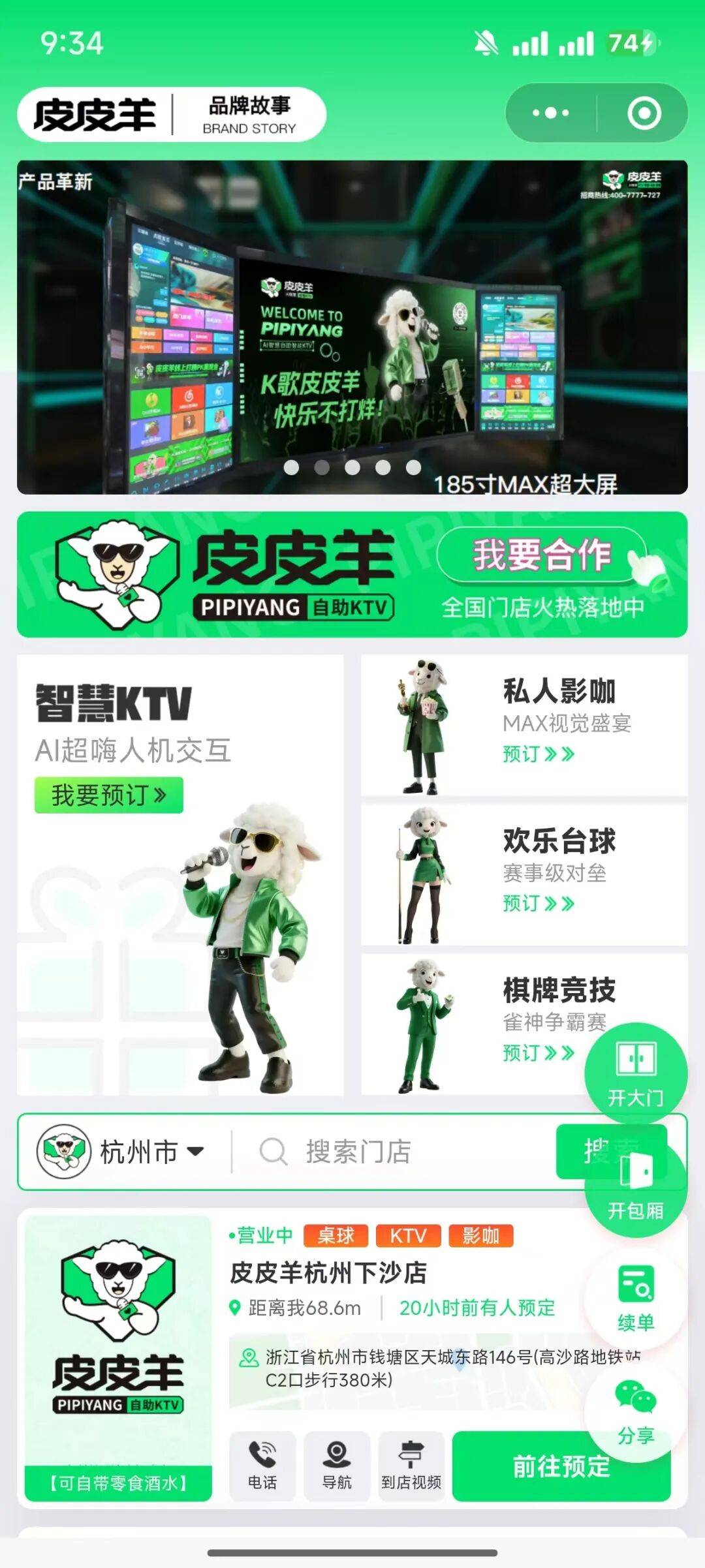 皮皮羊的 “自助” 并非简单取消人工,而是用技术构建全流程智能体系:通过小程序预订凌晨场次,到店扫码即可开门,全程无需与人接触;声纹点歌、智能灯光调节、自助售货柜等设备,替代了传统服务员的工作,哪怕凌晨 4 点,也能精准响应需求;远程运维系统实时监控设备状态,90% 的问题无需现场处理。