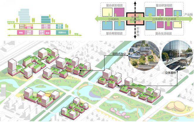 规划示意图,来源于上海发布这是前所未有的大规模整体更新,通过交通枢纽、立体街区、花园办公、生态住区等模式的建构,