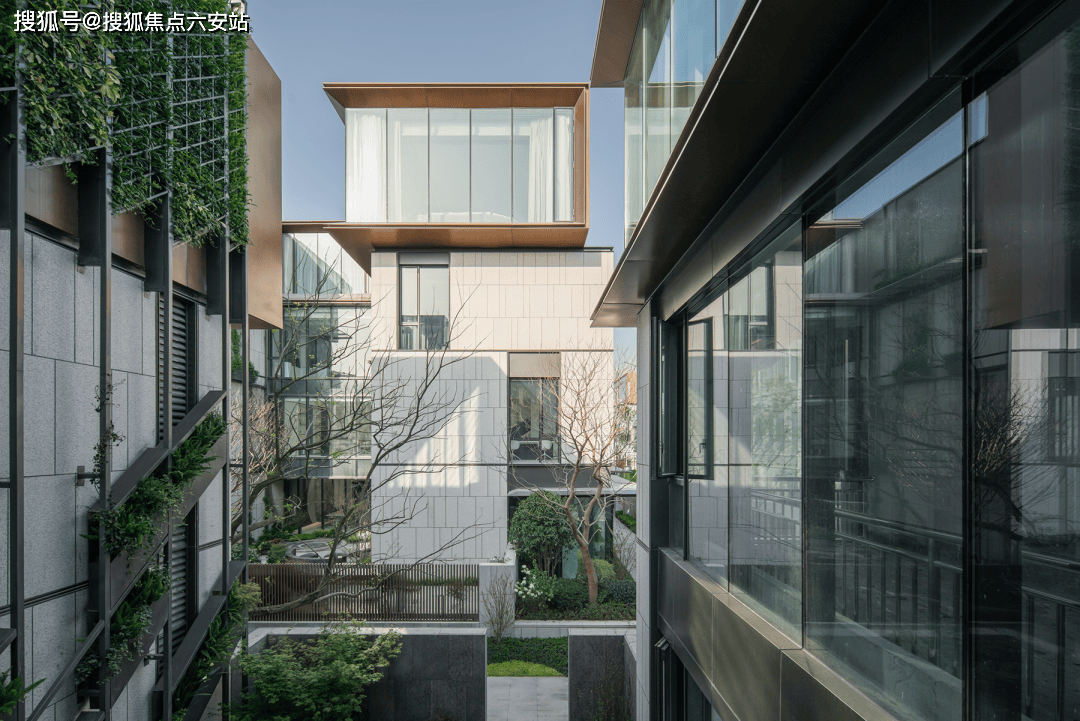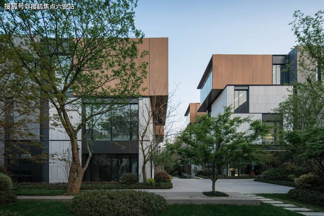 联袂英国皇家建筑师协会奖得主孟凡浩、景观设计大师宋淑华等,以“金石篆刻”为灵感,打造“建筑铭章”。建筑立面采用暖铜色铝板、白麻石材与玻璃幕墙,搭配“不对称取景框”设计,将湿地景观引入室内,形成“有天有地”的私密空间。
