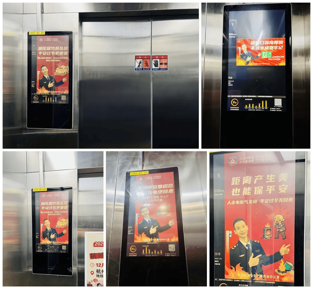在线下,一张全方位的安全宣传物理网悄然铺开。居民每日必经的电梯厢,变成了流动的“安全知识画廊”,1300多部智慧屏滚动播放五大安全主题海报,让等候的片刻成为学习的瞬间,公益广告投放持续至春节后,预计覆盖将超150余万人次。
