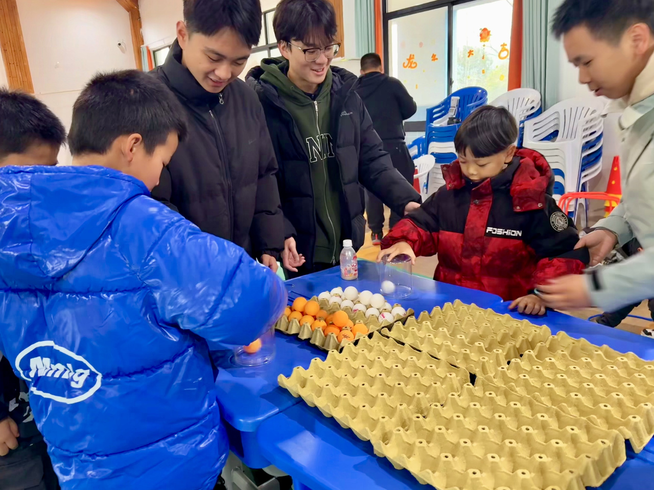 “与普通游戏不同,这个游戏的道具十分特别。它们是由废纸盒、塑料瓶和废弃蛋托等材料制作而成的。这是我们将垃圾分类知识与趣味游戏完美结合的一次创新实践,我们希望通过这次活动加深孩子关于垃圾分类的意识。”“哥哥姐姐”志愿者团队负责人介绍。这个游戏不仅锻炼了手眼协调能力,还在潜移默化中强化了他们对“可回收物”“有害垃圾”等分类标准的记忆。