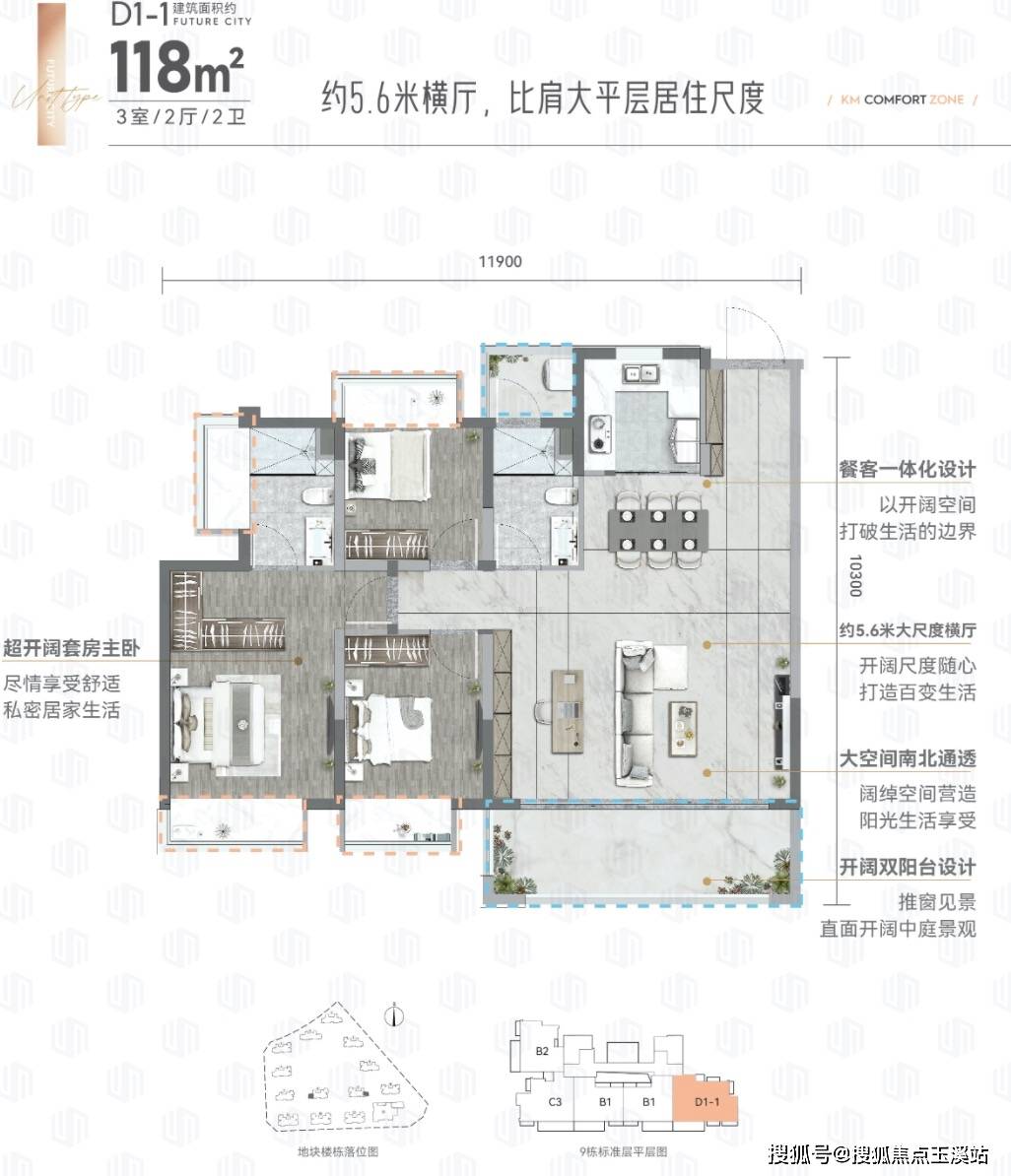 118㎡3房2厅2卫 约5.8米横厅设计,比肩大平层居住尺度,可变四房