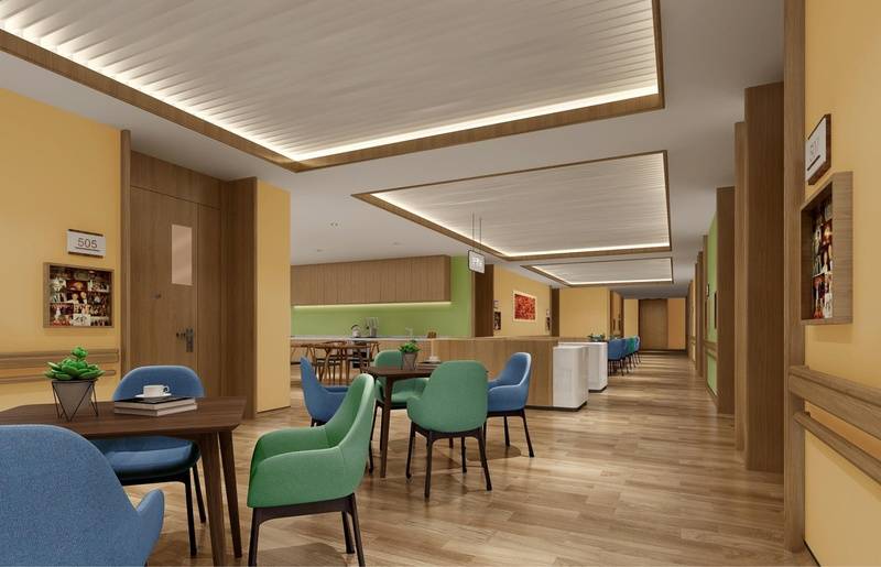 内公共活动空间丰富多样,宛如一座文化娱乐的宝库。健身房里,长者可以挥洒汗水,保持健康体魄;乒乓球室、台球室中,切磋球技,增进友谊;书法室、绘画室里,挥毫泼墨,抒发情感;社团活动室、党员活动室是交流思想、开展活动的理想场所;理发室让长者时刻保持整洁形象;冥想室为心灵提供宁静的港湾;手工室激发创造力,享受手工乐趣;麻将室、舞蹈室充满欢声笑语;多功能厅可举办各类大型活动;图书馆里书香四溢,满足阅读需求;厨艺学堂传授烹饪技巧,享受美食乐趣;玉兰剧场、大师工作室、玉兰书苑更是为长者提供了展示自我、学习交流的平台。