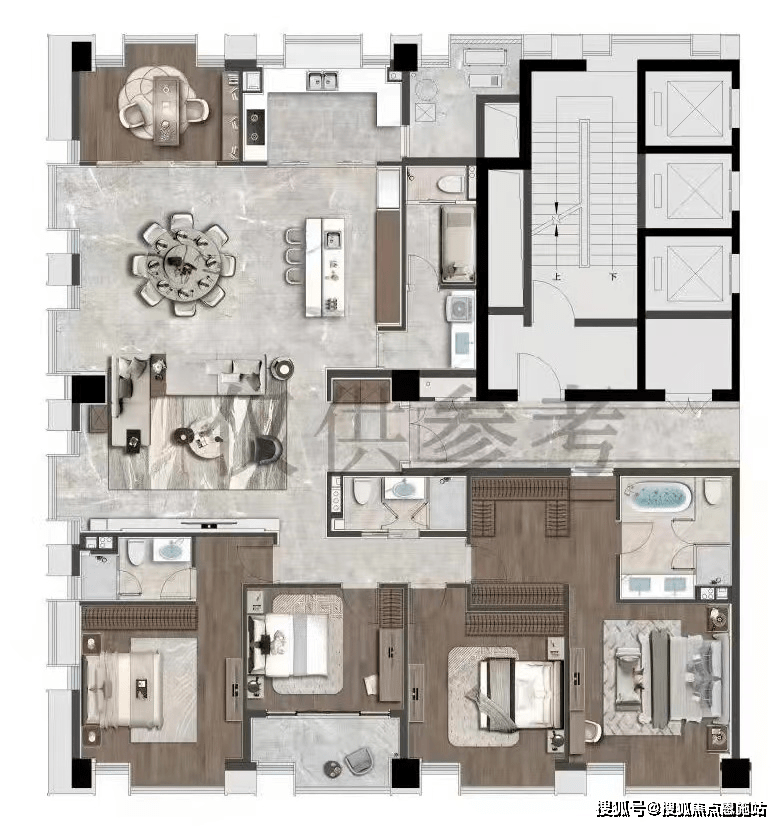 约330-340方大平层奢阔空间,全屋智能家具配置;打造4+1户型和4+1+1的真改善居住空间;三面采光、南北通透的边套格局;四开间朝南设计,每一个卧室全朝南,使得居住舒适度达到最佳状态。